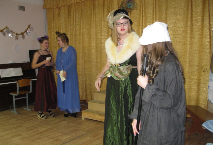 28 декабря состоялась традиционная новогодняя сказка, которую подготовили ученики 9 класса под руководством Маклакова Андрея Николаевича и Марченко Елены Павловны. В спектакле также приняли участие 2 ученика 7 класса и 1 ученик 8 класса. В завершении была исполнена заключительная новогодняя песня совместно со зрителями. Программка спектакля.