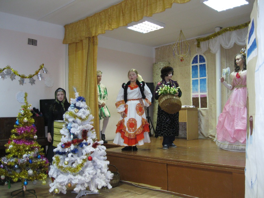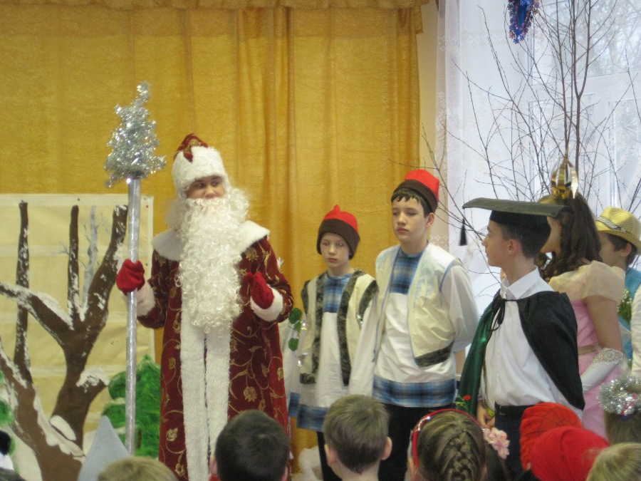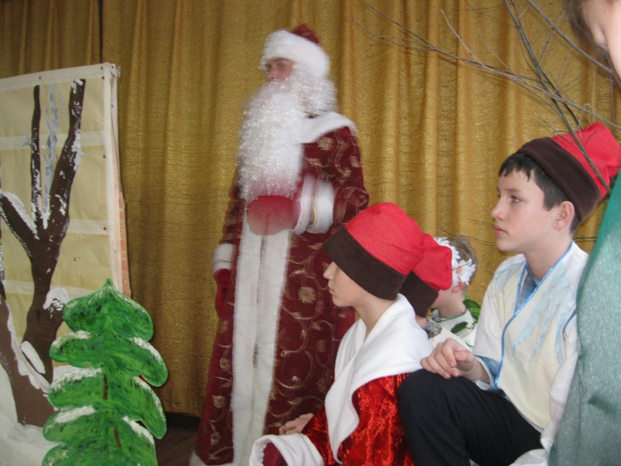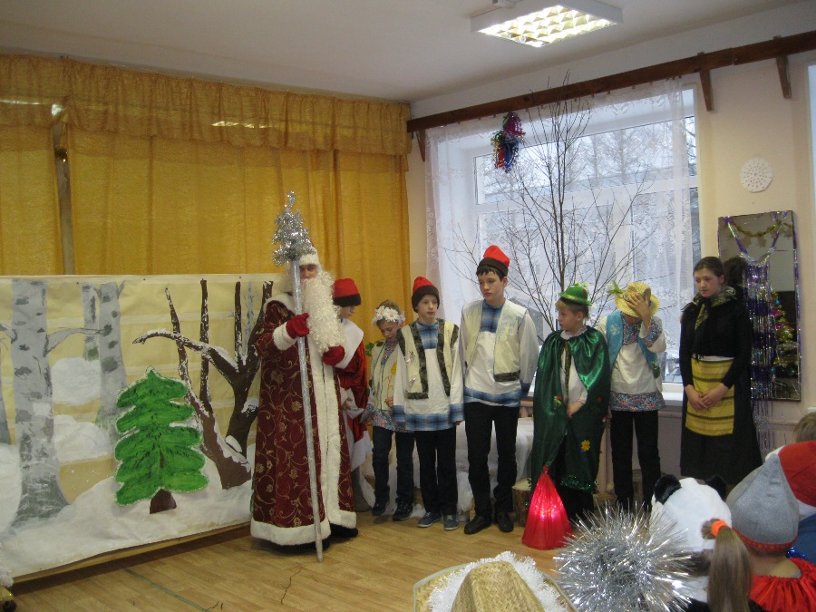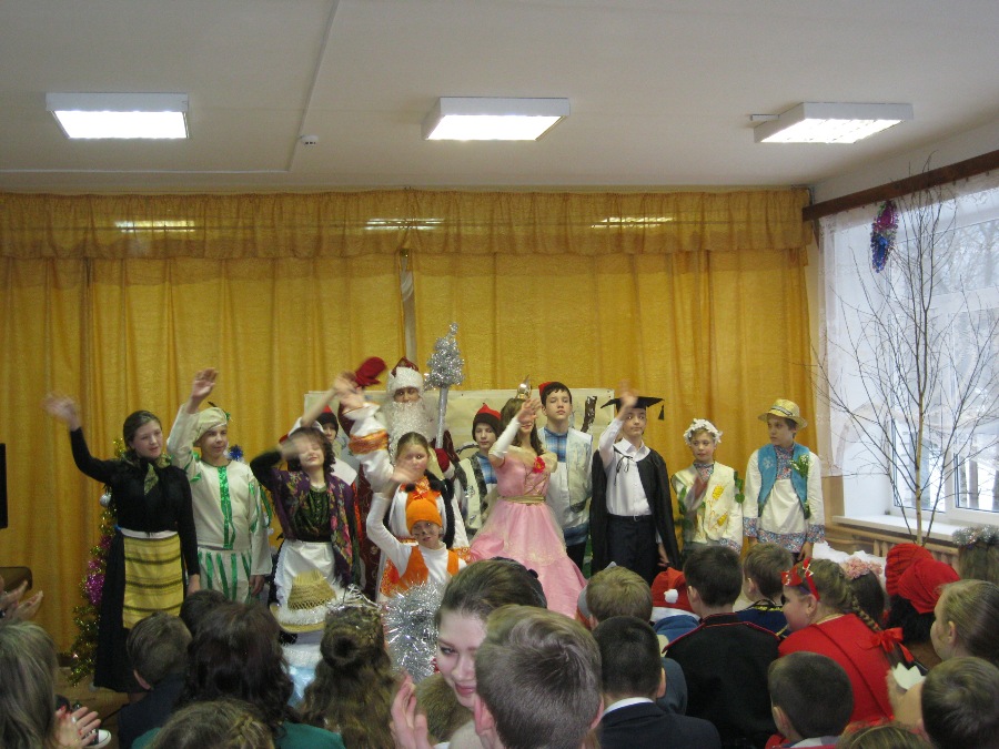 29 декабря состоялся новогодний праздник для учащихся 1-5 классов, который был подготовлен и проведён учениками 6 класса и классным руководителем Тереховой Ольгой Антоновной. Сначала шестиклассники провели игровую программу с хороводами, песнями, конкурсами, а потом представили вниманию участников новогоднего праздника спектакль "12 месяцев". Постановка сказки и игра актёров-учеников 6 класса были великолепны.