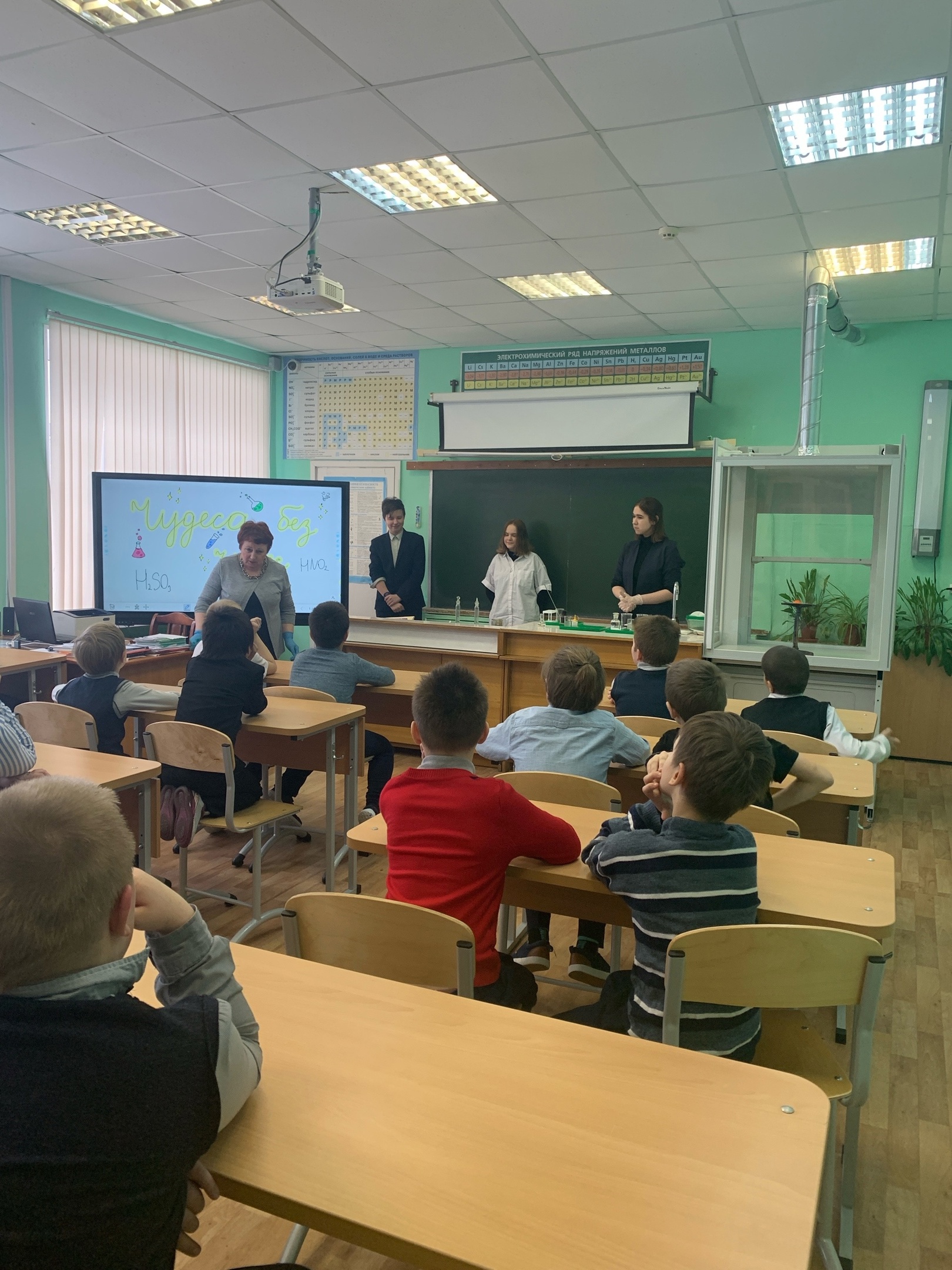 C 26 февраля 2024 года по 1 марта 2024 года в школах Тосненского района проводилась Неделя Химии по теме «Знаменитые химики и их вклад в развитие науки». Накануне в нашей школе была проведена подготовительная работа обучающимися 8 и 9 классов. Восьмиклассники готовили информацию о знаменитых русских учёных-химиках, 9 класс - о вкладе учёных в дело Победы в годы Великой Отечественной войны. Обучающиеся 9 класса Алексеева Полина и Богданова Анастасия оформили в школьной рекреации стенд «Галерея великих химиков». В рамках проведения недели химии состоялись беседы: для учеников 4 класса на тему «Жизнь и научная деятельность М.В.Ломоносова»; для учащихся 8 и 9 классов - «Вклад учёных в дело Победы в годы Великой Отечественной войны». С целью привлечь внимание обучающихся начальных классов к предмету "Химия" обучающиеся 8 класса Пинчук Кира, Солошенко Александра, Сысоев Иван при поддержке одноклассников подготовили и провели для младшеклассников внеурочное мероприятие «Чудеса без чудес».